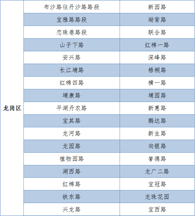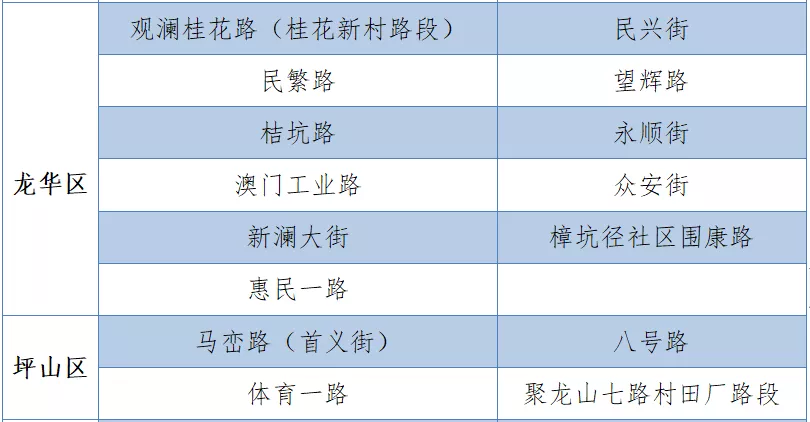 布吉荣华路、三联大道、铁西路、文博路、景芳路