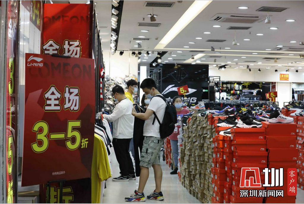 市民们在打折的门店选购商品。