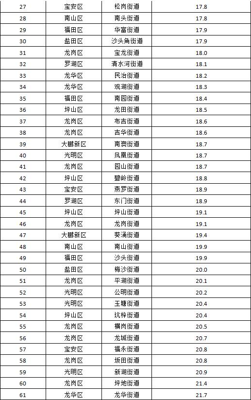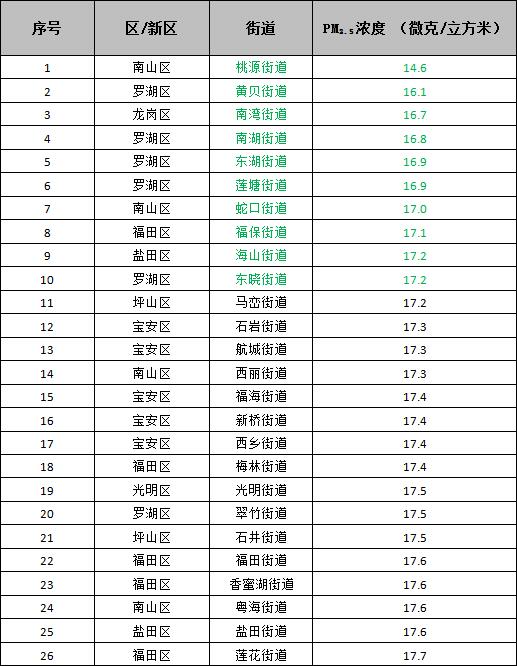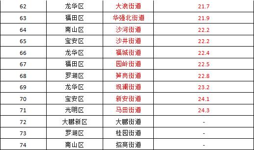 注:大鹏、桂园及招商等街道由于仪器故障及断电等原因,有效数据不足。