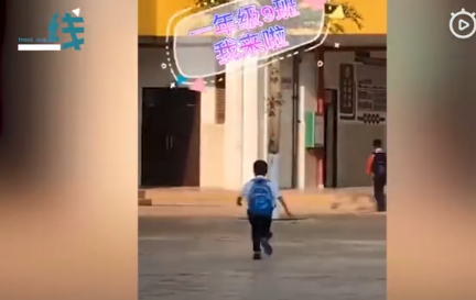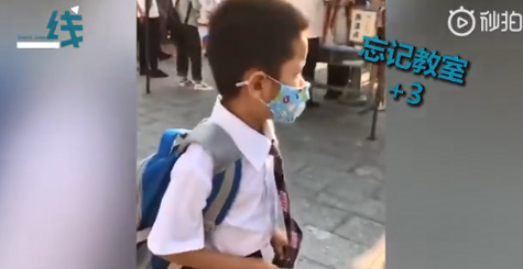 近日,四川一小男孩背着书包拎着桶在学校里“转悠”一圈之后,因为找不到教室哭了……
