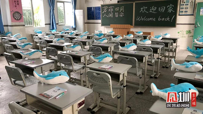 为了解决上述问题,学校利用“心灵驿站”咨询室,每周安排心理讲师线上为家长、学生和老师开展心理培训,提供答疑服务。为了让师生怀着轻松的心情快乐返校,学校还订制了象征友谊、和平、友好的小海豚,在黑板上书写了欢迎标语,返校时赠送“贴心大礼包”等,还特别准备了“给学生的一封信”和“给家长的一封信”,从细微之处向师生、家长传递股股暖意。