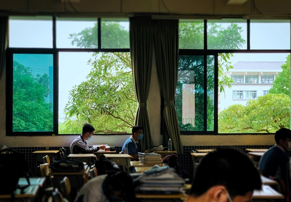 学校课室的课桌摆放呈“一人一桌”制,学生自觉隔开,少交谈少聚集,刚返校进入课堂,就能感受到高三学习的紧张,很多学生已经打开书本默读或是写起了试题。十七岁的郑同学告诉记者,虽然疫情期间在家上网课的学习生活也很充实,但能回到校园学习心里更踏实,也更有紧张感,对学校在疫情防控上做的工作也感到放心和认可。