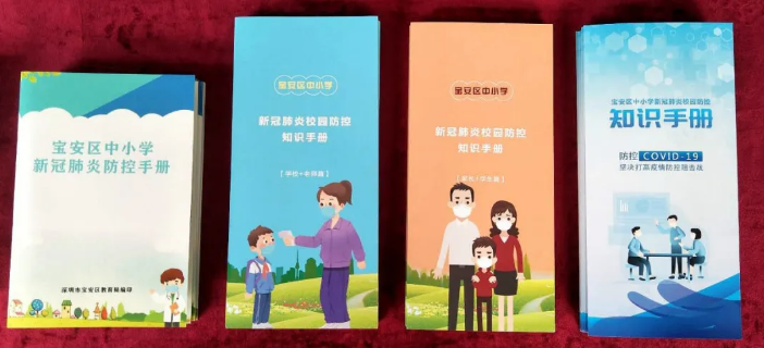 据了解,为进一步规范指引学校、学生、家长做好疫情防控工作,形成防控合力,宝安区教育局在印发4.5万份防疫科普及工作指引海报的基础上,编印了《宝安区中小学新冠肺炎防控手册》及《宝安新区中小学新冠肺炎防控知识手册》(学校篇、教师篇、学生篇、家长篇)四个版本,以各场景工作流程指引和问答式科普教育的形式进行指导。
