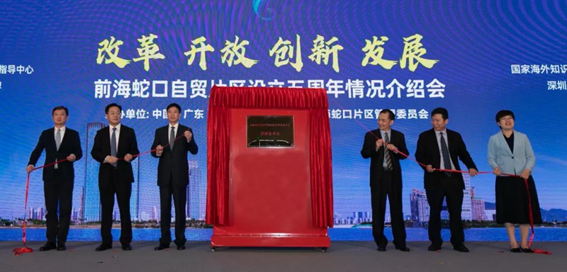 在4月27日上午前海蛇口自贸片区管委会举行的“前海蛇口自贸片区设立五周年建设情况介绍会”上,国家海外知识产权纠纷应对指导深圳分中心正式揭牌仪式。