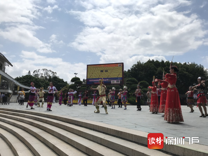 “五十六个民族亲亲一家,就像百花园里盛开的花……”5月1日上午10点半,锦绣中华民俗村入口的广场响起了《母亲是中华》的歌声,身着民族服饰的工作人员们载歌载舞迎接游客的到来,表演吸引了游客们驻足观看、拍照。民俗村工作人员告诉记者,疫情期间暂停的开园迎宾表演在假期首日恢复,“五一”期间景区还推出了“民俗游园会活动”。