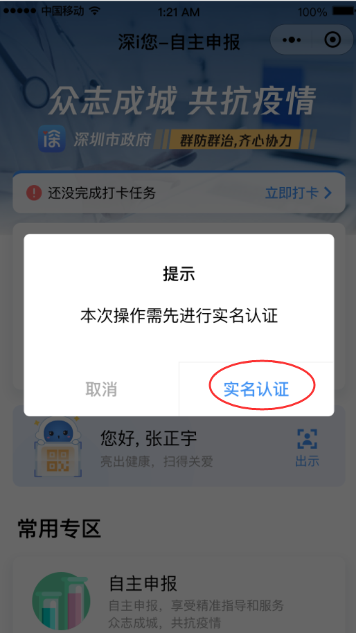 第二步:点击底部菜单栏“健康申报”-“深i您”进入申报系统。