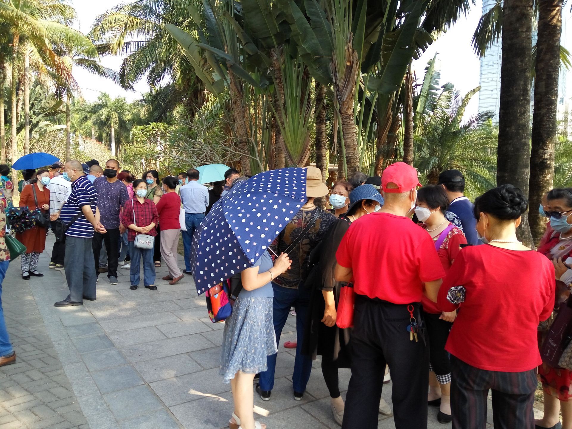 见圳客户端·深圳新闻网2020年5月4日讯(深圳特区报记者 戚金城)莲花山公园是市民最爱打卡的公园之一,“五·一”前3天共接待16.5万游客,其特色相亲角也为市民所熟知。受疫情影响,相亲角2月2日至今仍是封闭状态,相亲资料统一取下。但读特记者连日走访发现,家长们在紧挨着相亲角的西侧又重新开辟了一个场地帮孩子征婚,高峰时段有百余人聚集。园方表示,该园大数据平台一直实时监测人流量,对扎堆聚集人员进行劝离,但仍有部分家长不配合。