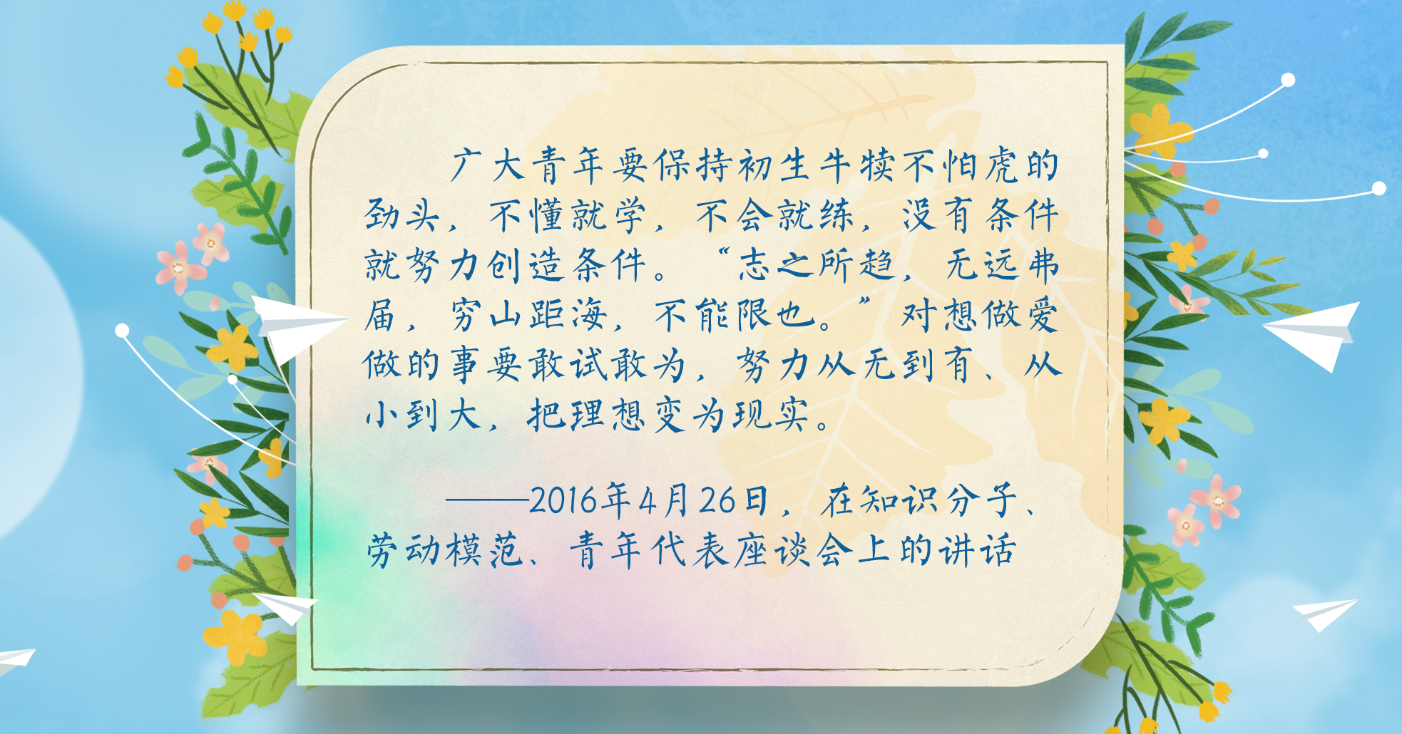 青年是祖国的未来、民族的希望。习近平总书记一直以来都十分重视青年工作,他常常鼓励青年追求梦想、努力奋斗。“青年最富有朝气、最富有梦想”“好儿女志在四方,有志者奋斗无悔”“中华民族伟大复兴终将在广大青年的接力奋斗中变为现实”。总书记的谆谆教诲犹如一本成长指南,引领新时代青年走好人生之路。