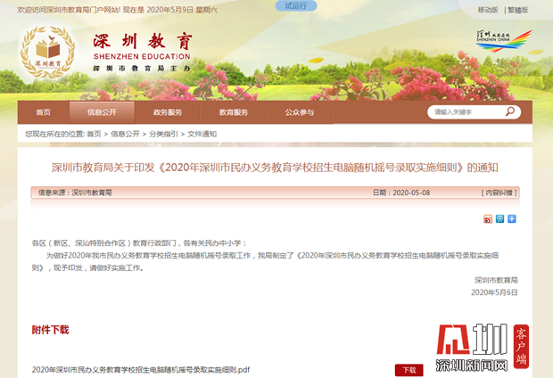 见圳客户端·深圳新闻网2020年5月9日讯(见圳客户端、深圳新闻网记者 张玲)2020年,深圳中小学招生政策发生重大改变。根据深圳市《关于做好2020年普通中小学招生入学工作的通知》的规定,民办中小学校招生必须摇号。