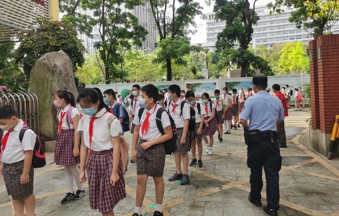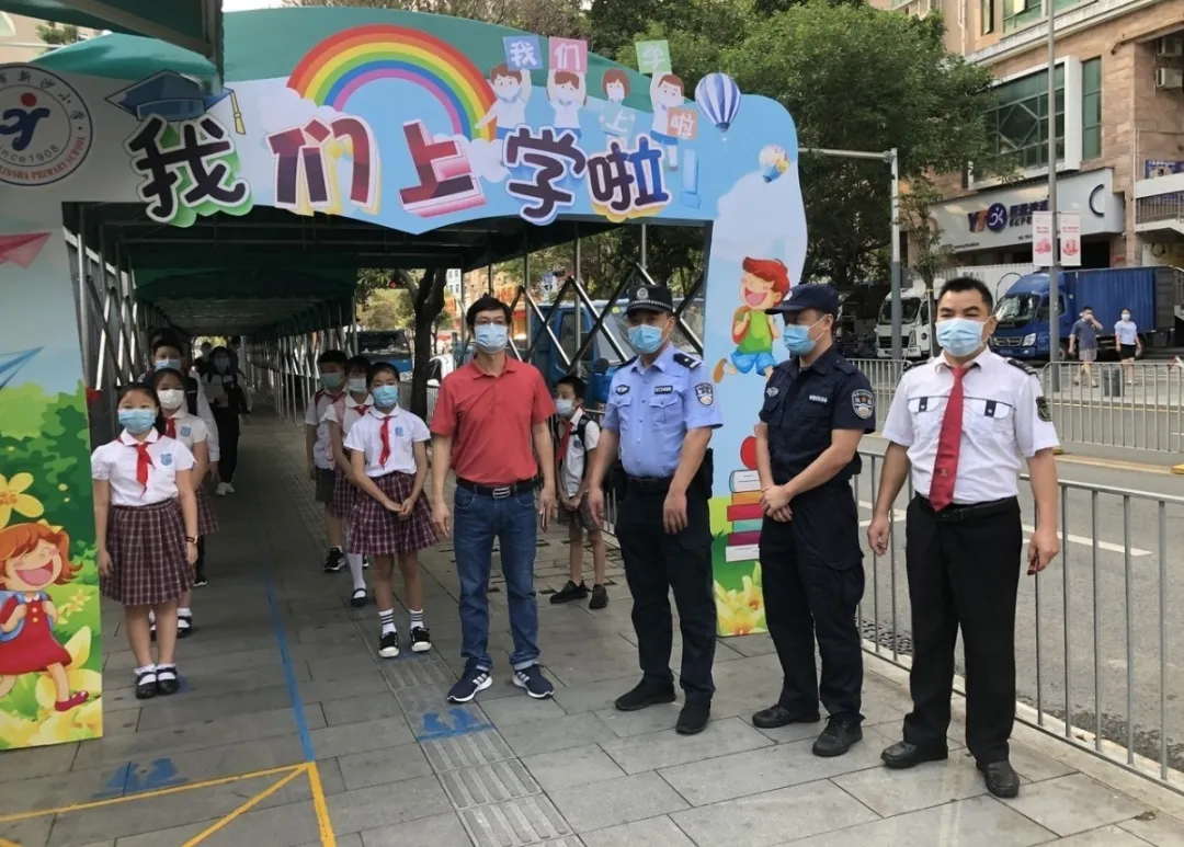 学校大门是校园疫情防控的第一道防线,把好第一道关卡尤其重要。复学前期,福田公安分局的社区民警联合老师、医生、安全负责人、保安等人员,高标准开展健康监测、隔离转运、精准防控等各项准备工作。除上学、放学时段,辖区各学校将采取全封闭管理,对外来人员严格询问登记,逢车必检、逢人必查,将风险隐患拦截在校门外。