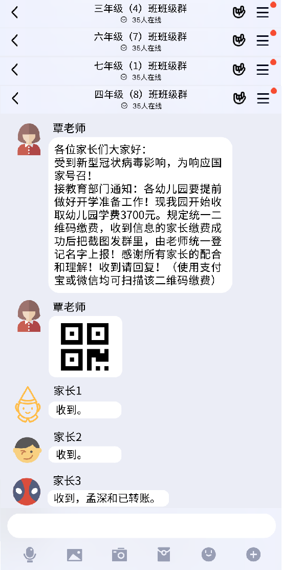 骗子在收款后立即退群,等真老师上线后,被骗父母醒悟过来后,骗子已经逃之夭夭。