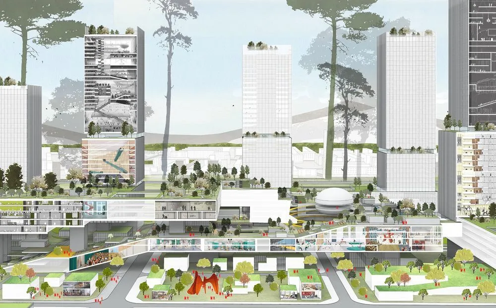 南山科技创新中心,一个以“产业生态雨林”为概念的产业园区,由HPP、深圳市建筑设计研究总院(SZAD)、AREP共同设计。