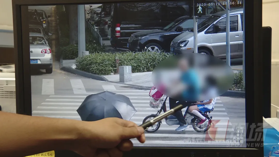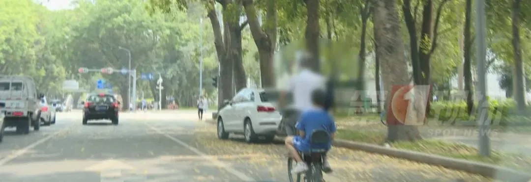5月12日下午,在南山外国语学校科苑小学与南山外国语学校中间路段,一位老人骑电单车,载着一名小学女生,沿着高新南环路由西往东方向行驶。