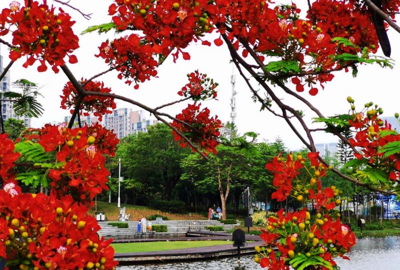 见圳客户端·深圳新闻网2020年5月15日讯(深圳特区报记者 邱海彬 文/图)又是一年凤凰花开时,五月的鹏城沉浸在凤凰木火红的海洋之中,道路旁、公园内、小区里的凤凰花盛开着美丽的花朵,为城市增添了不少靓丽色彩,红红火火的凤凰花成了夏日热情的引领者。