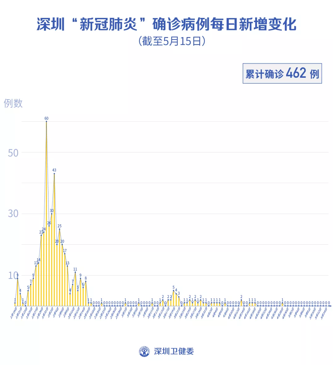 截至5月15日24时,深圳累计报告新冠肺炎病例462例。