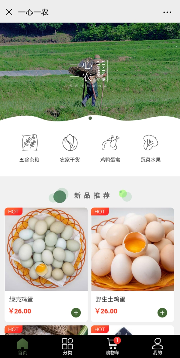 “一心一农”平台页面。扫码可关注、了解、购物。