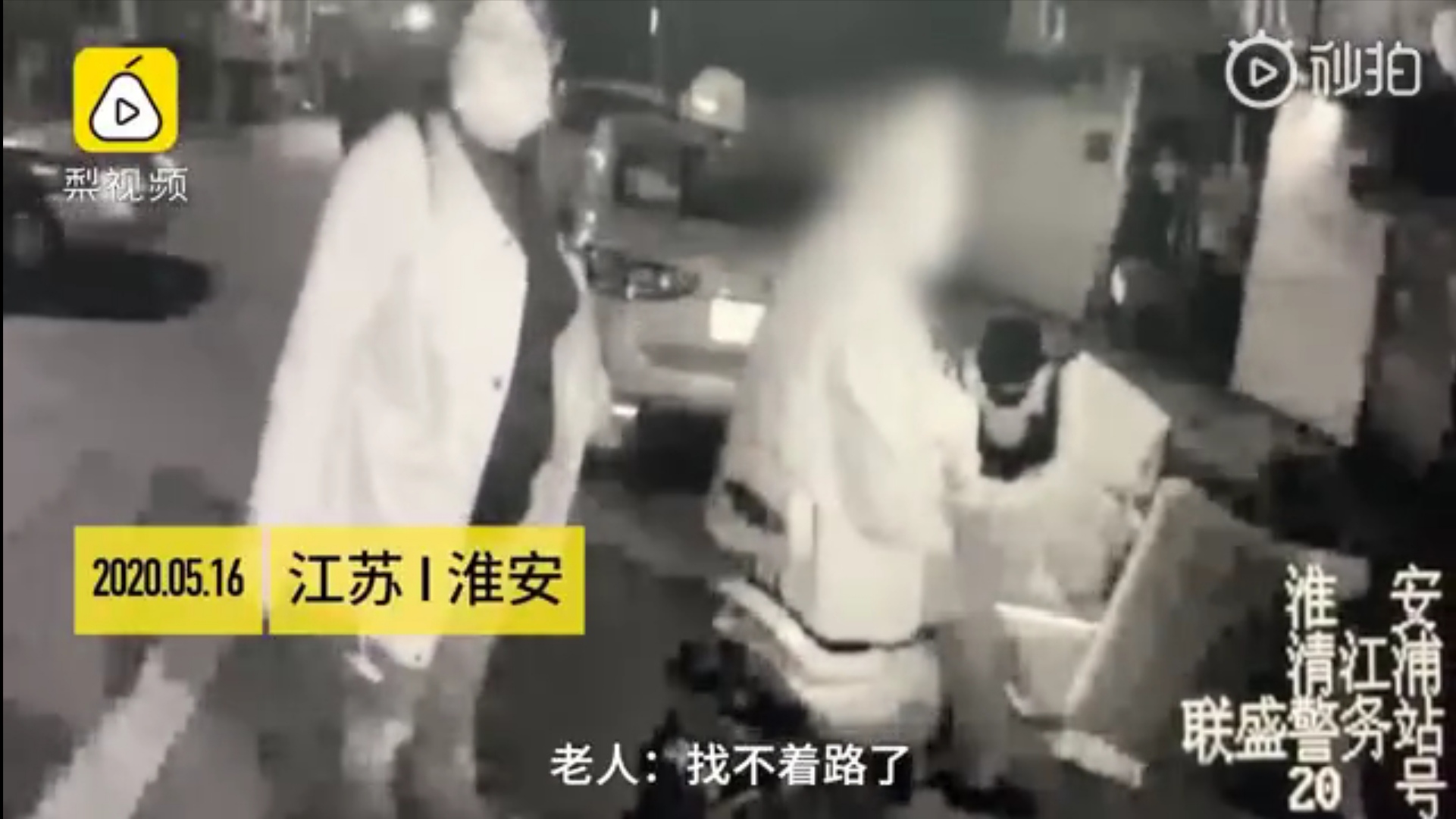 江苏淮安市民李女士发现一位老人独自在市区行走