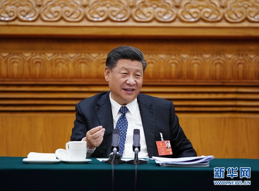 5月24日,中共中央总书记、国家主席、中央军委主席习近平参加十三届全国人大三次会议湖北代表团的审议。新华社记者李学仁摄