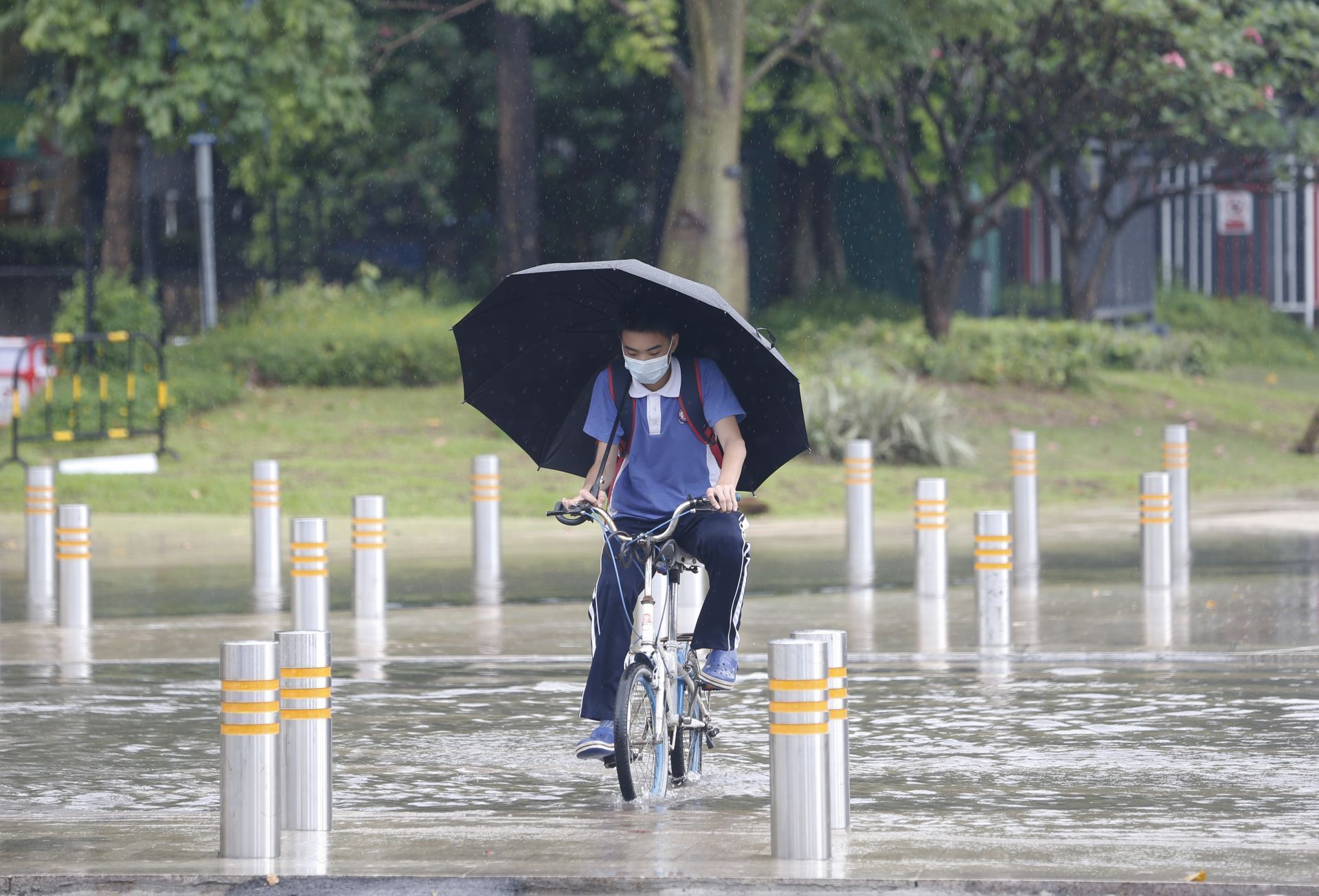 短时强降雨午间再次来袭 市民穿拖鞋带雨伞出行