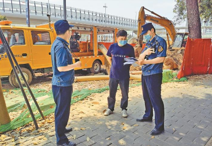 占道施工需提前申报,并遵守文明施工规范,减少施工给市民带来不便。