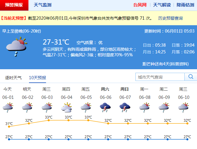 目前深圳处于龙舟水降水多发季节 未来一周雷雨天气较多