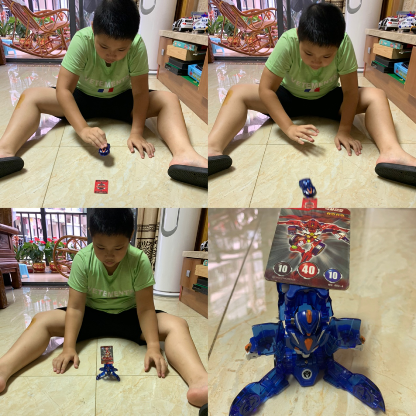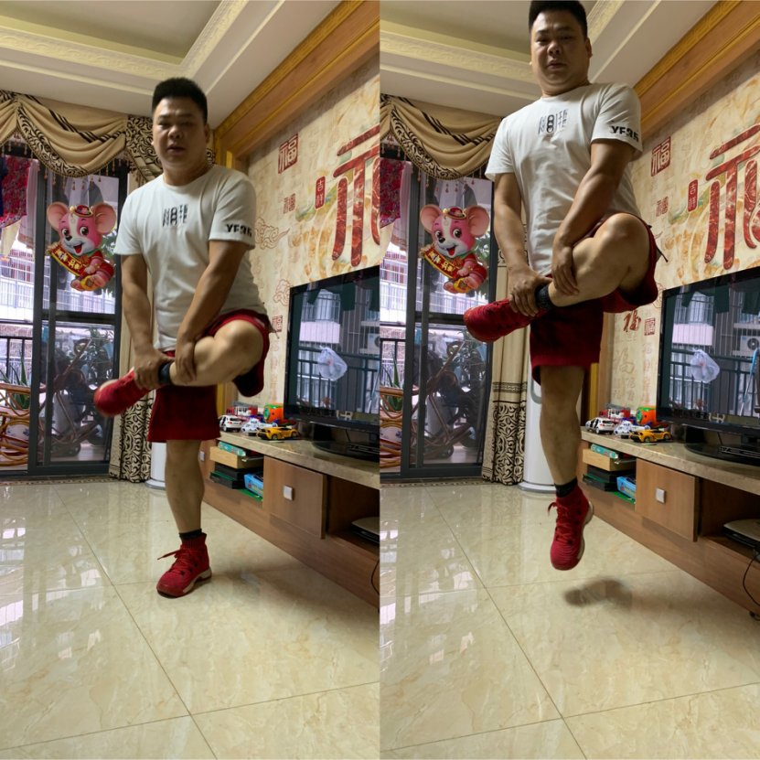 ▲这是爸爸小时候爱玩的“斗脚”游戏。爸爸现在也教我玩,并告诉我遇到挫折时要跟“斗脚”游戏一样奋勇而战,永不放弃迎难而上。