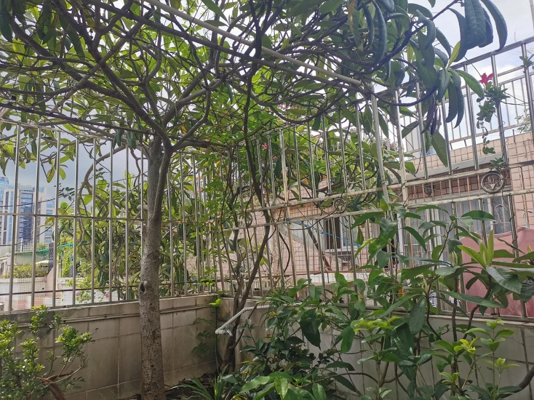 蛇口消息报2020年6月3日讯 楼顶种树看起来很美,但可能也存有安全隐患。接下来你看到的这张图是南头街道马家龙社区彩虹居小区虹晖阁9楼楼顶种植的枇杷树,树约3米高,枝干粗壮。