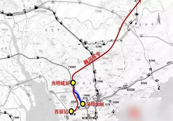 赣深高铁是京九客专的最南段,其南端衔接厦深铁路、广深港客专,中部与广梅汕铁路、广汕铁路相衔接,北端沟通昌赣客专、赣龙铁路、渝长厦铁路、赣韶铁路等,并向北可延伸至北京,形成一条跨越华北、华中、华南的南北向快速客运通道。