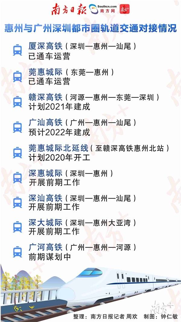 这种新趋势正在显现。如今,深惠城际、深汕高铁、深大城际3条轨道交通已全面启动设计工作。深汕高铁、莞惠城际小金口至赣深高铁惠州北站段,还被省发改委列为今年新开工重点项目,计划年内开建。这些轨道交通建成后,深圳都市圈跨城工作生活有望成为常态。
