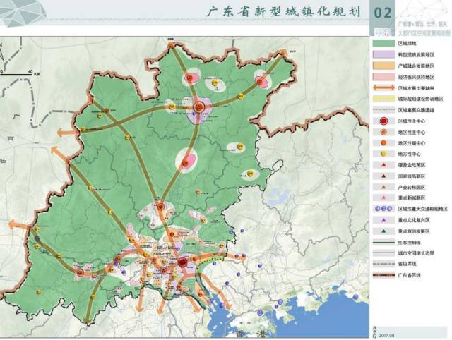 2017年公布的“广佛肇+清远、云浮、韶关”大都市区空间发展规划图。