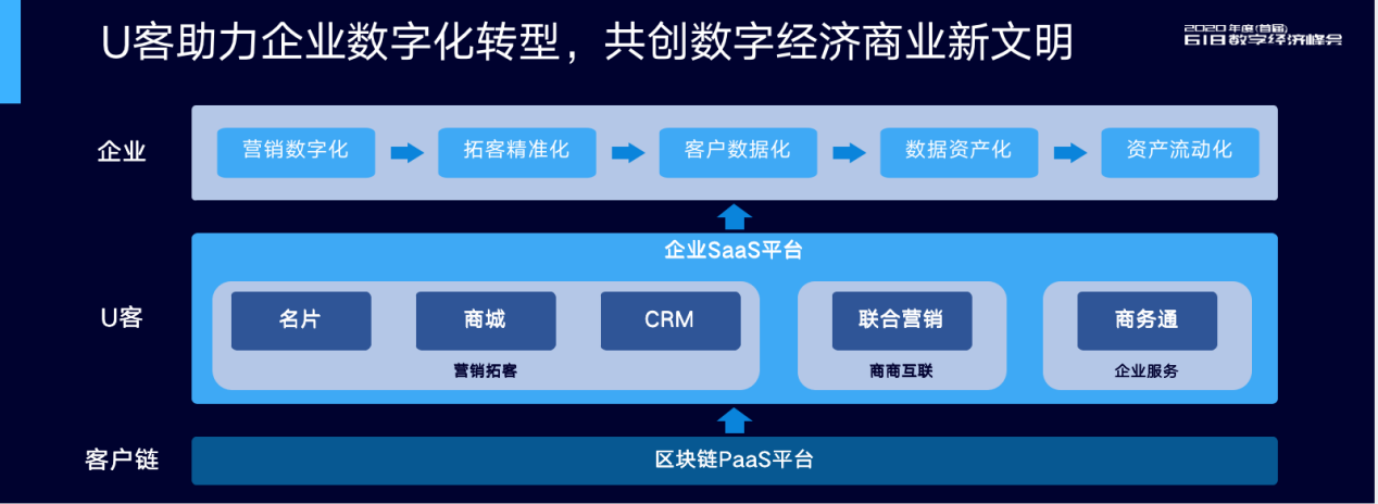 在这个流量时代,数字经济以不同形式存在于各行各业,围绕在我们身边,影响着我们的生活。我国数字经济的的产业数字化部分所占比重由2005年的49%提升至2018年的79.5%,成为我国数字经济的主引擎,微趣时代紧随时代潮流,服务B端企业,通过数字化技术,为企业拓客提供支持,“U客“助力数字经济应运而生,通过社交网络的私域流量传播获客,实现客户的营销触达、交易转化和客户关系管理;借助客户链技术,通过联合营销进行商商互联互通,打破数据孤岛,实现客户资产的流动增值;借助金融科技工具,提高企业对员工的商务出行等服务效率。
