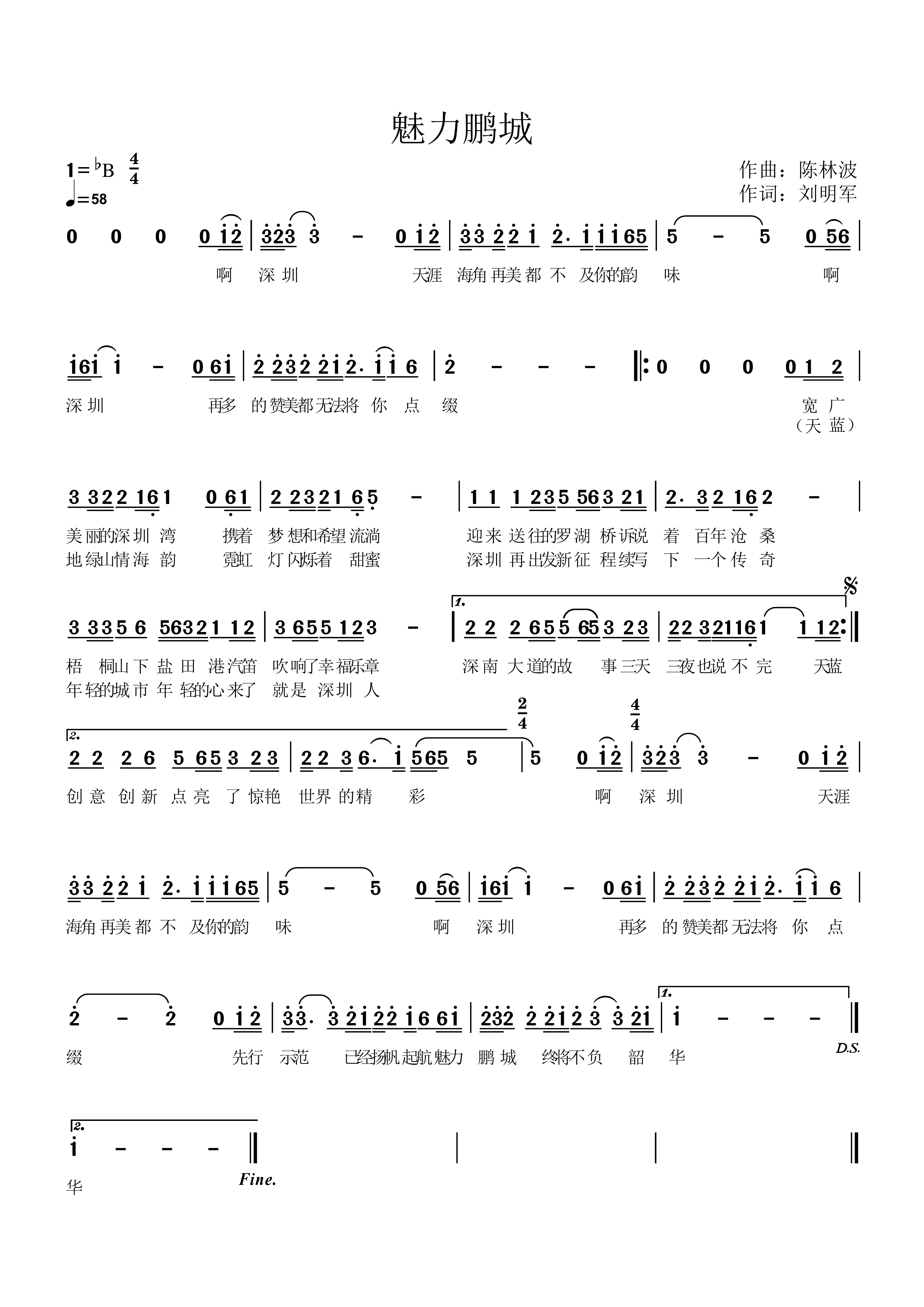 《魅力鹏城》的歌词中,一句“来了就是深圳人”唱出了所有深圳人对这座城市的依恋和不舍。作为镶嵌在粤港澳大湾区的一颗璀璨明珠,深圳就是一个美丽的梦想家园。歌曲《魅力鹏城》由宝安区公共文化服务中心主任刘明军作词,宝安实力派创作型歌手陈林波作曲。整首歌配合潮汕青年女歌手陈泽玲柔美、细腻、温婉的声音,将歌曲所要表达的鲜明时代特征、新时代的最强音、浓浓的正能量、青春励志与岁月激情演绎到了极致。整首歌曲风沉稳、含蓄,节奏舒缓,不愧为一首绝佳的情感歌曲。
