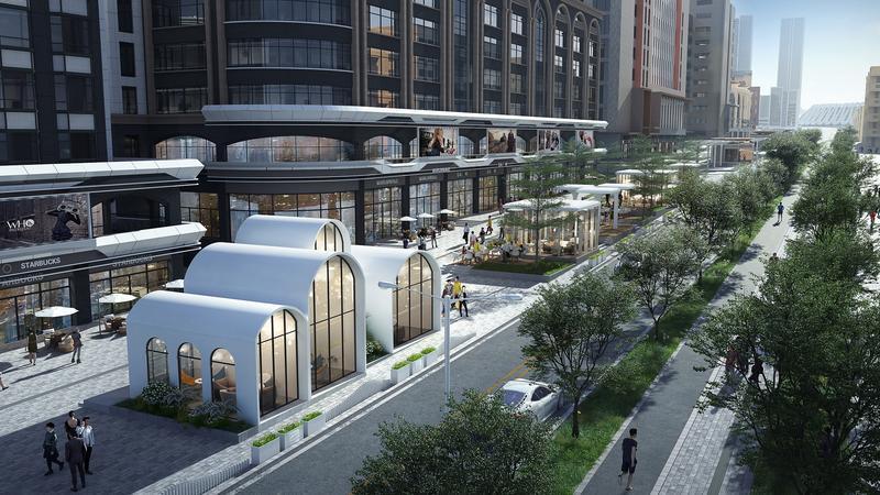 以时尚街区兴园段为例,该部分设计有欢乐天地和亲子广场两大功能,将成为街区重要的商业活动空间,为不同受众人群提供个性互动空间;影儿园区则将通过建筑外立面改造,以欧式设计为主风格,融东西方时尚元素为一体,形成建筑的城市品质与价值。
