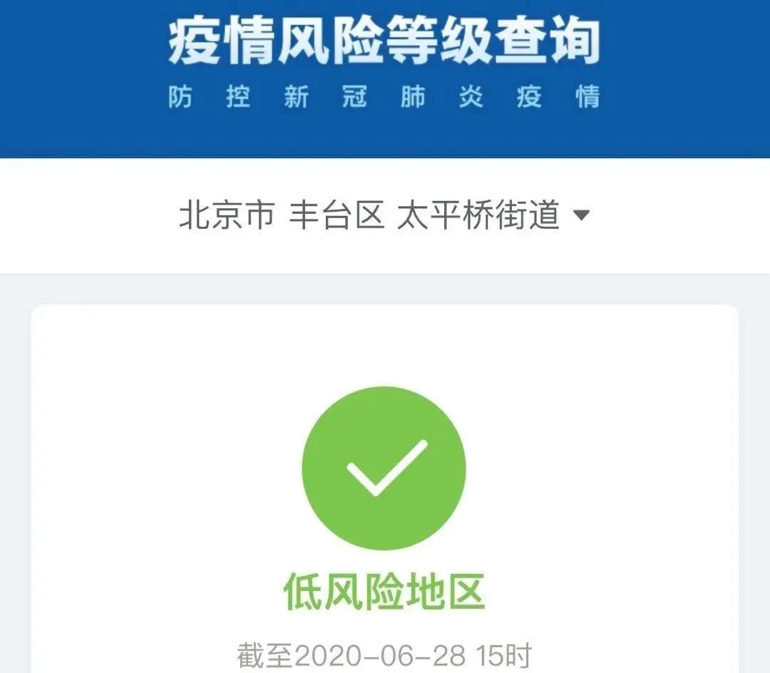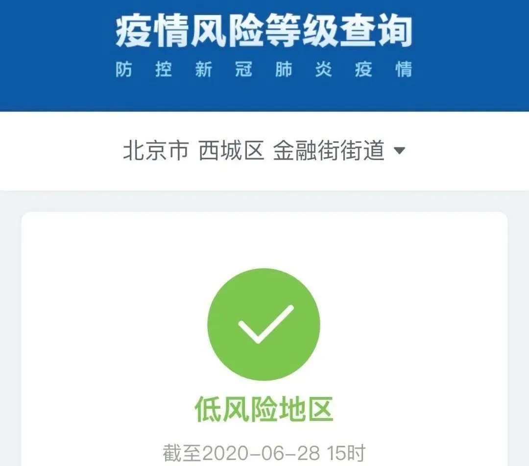 截至6月28日15时,北京市西城区金融街街道、丰台区太平桥街道由中风险地区变更为低风险地区。