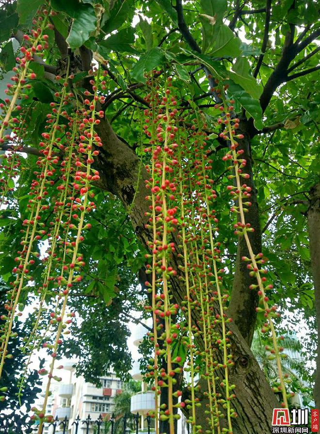 盐田区城管建设事务中心负责人向记者介绍,盐田区道路绿化红花玉蕊,主要分布在海山东二街等主要市政道路。其中,海山东二街上30余棵红花玉蕊树正开得热情似火,朵朵红花扮靓了街头夜景。红花玉蕊通常在傍晚开花,若要观察花开过程,在天刚刚黑时便该动身守候,花穗的盛开时间大约在晚上9时。红花玉蕊是典型的“虫媒花”,即以昆虫为媒介传播花粉的花种,因此,夜间赏花,还可以看见许多生动可爱的夜行性昆虫。