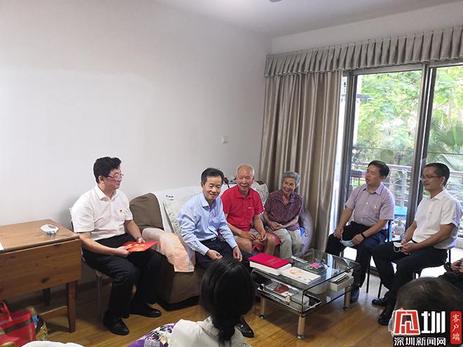 见圳客户端·深圳新闻网讯(记者 陈琳君 潘峰)为庆祝中国共产党成立99周年,2020年6月30日下午,盐田区组织开展走访慰问党员活动。区委书记陈清,区委副书记、代区长邓飞波,区人大常委会主任梁景海,区政协主席武威等区领导分组走访慰问辖区老党员、困难党员及抗疫一线党员代表,向他们致以节日的问候,并送上党组织的关怀。