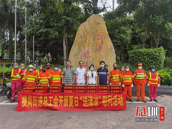 见圳客户端、深圳新闻网7月2日讯(见圳客户端、深圳新闻网记者 叶玉燕 通讯员 陈姝颖 彭东伊)进入夏季高温季节,当人们纷纷以各种防暑降温方式躲避太阳和高温之时,环卫工人们依旧头顶烈日,毅然坚守在大街小巷,用汗水守护着街道辖区的干净整洁。为做好防暑降温工作,保障一线职工的健康权益,根据深圳市总工会《关于做好2020年高温天气劳动保护工作的通知》文件要求,7月1日,横岗街道党工委委员、群团工作部部长、工会主席苏之程,总工会副主席陆治武一行率先拉开了横岗街道总工会“送清凉”活动的序幕。