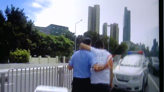 由于春风高架桥交通流量非常大,考虑到情况紧急,交警决定由铁骑在前方开道,驾警车将司机送往最近的罗湖人民医院救治。