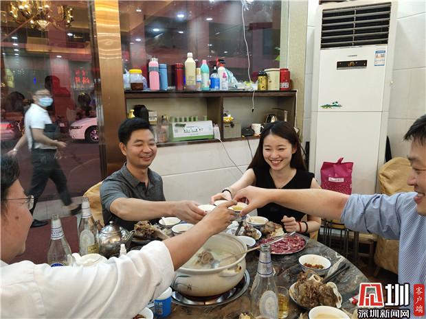 走过几个红绿灯,直播镜头来到著名的“鸡煲一条街”,深圳人所熟悉的“向西鸡煲”也在此处。“一路向西,吃鸡去”是许多深圳人都知道的梗,也吸引众多游客慕名而来。来自上海的董小姐,每次来深圳出差都会带朋友过来,她说,“这里有深圳最好吃的鸡煲。”