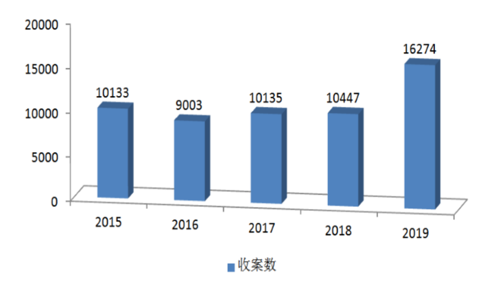 案件概况方面,两级法院行政审判受理案件数量大幅增长。2019年两级法院共受理各类行政案件16274宗,审结14322宗,同比分别增长55.8%和56.9%,均创历史新高,结案数量和效率明显提升。