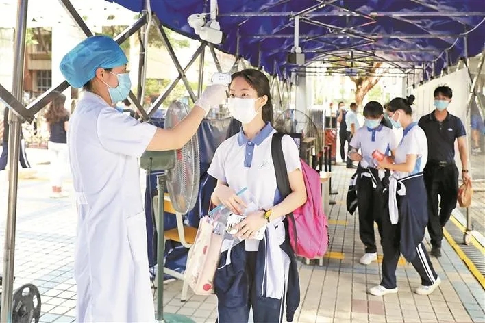▲考生进入考场需要通过体温检测。深圳晚报记者 张焱焱 摄
