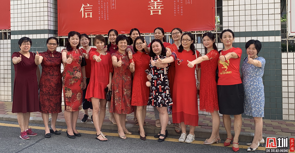 【深圳中学】身穿红色旗袍的家长们预祝考生们旗开得胜。