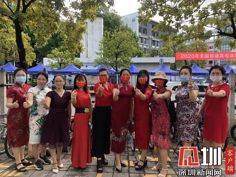 “以梦为马,不负韶华,旗开得胜,马到成功。”学生家长们身穿旗袍为孩子呐喊助威。