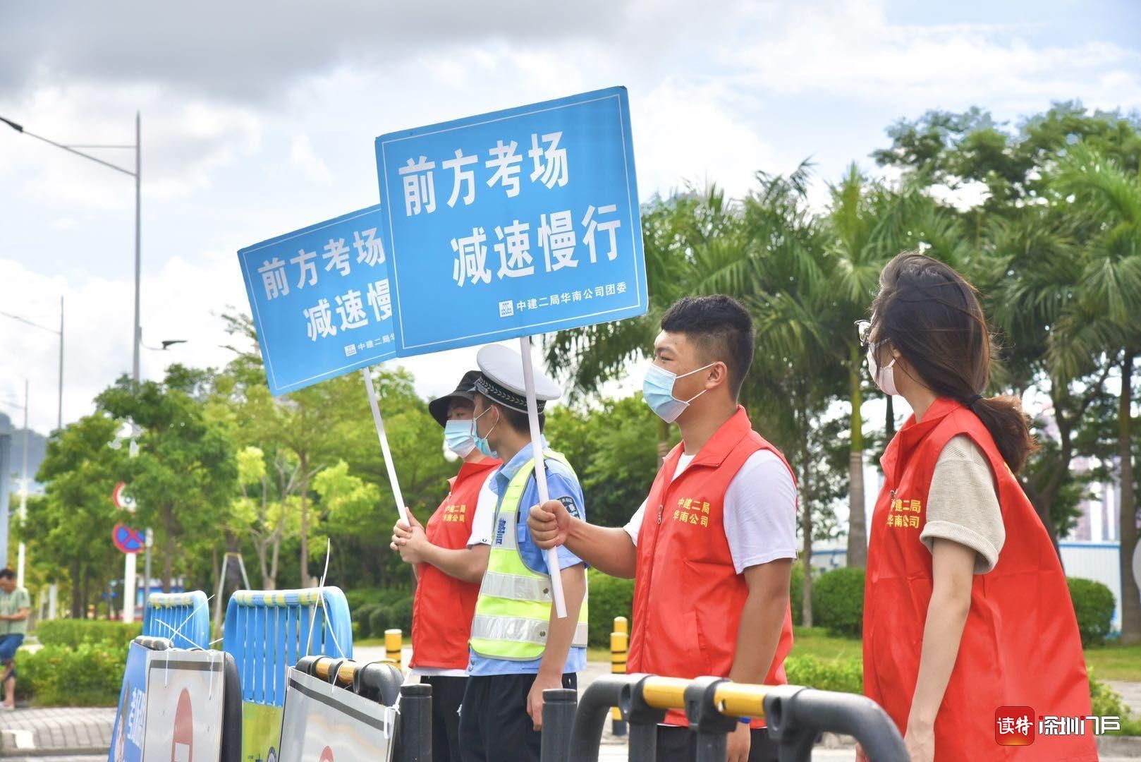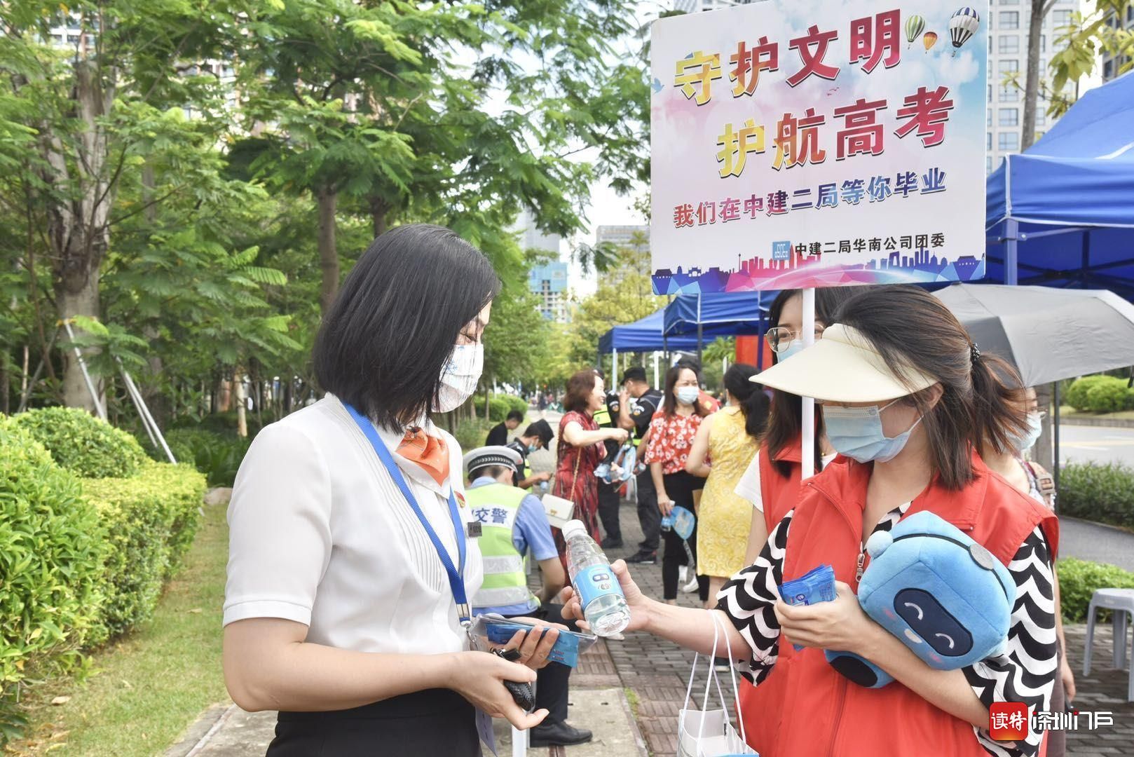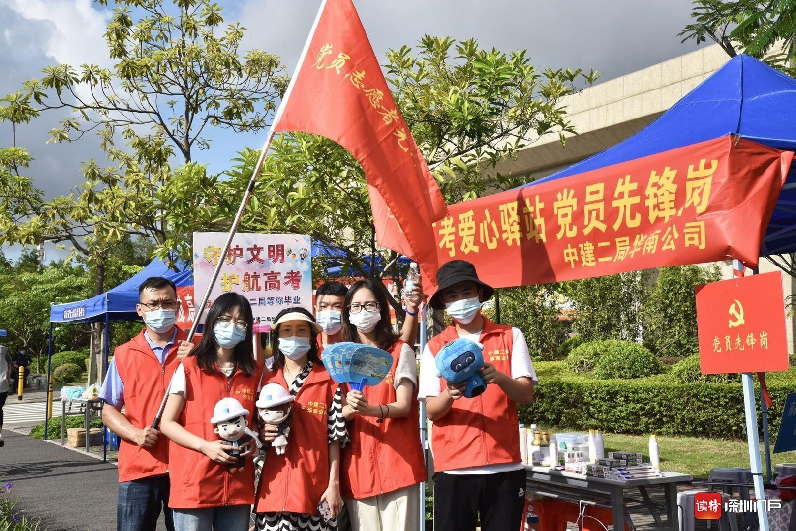 见圳客户端•深圳新闻网2020年7月7日讯(深圳特区报记者 窦延文)7月7日,因疫情推迟了一个月的高考如期而至,中建二局华南公司深圳地铁13号线五、七工区迅速成立“党员志愿者服务队”来到深圳市第二高级中学,设立“党员先锋岗”志愿者爱心驿站,在考场外为考生和家长准备防疫和清凉用品,并协助南山西丽交警大队进行文明引导、秩序维护,为考生们营造一个安静而有秩序的外围环境,助力高考学子顺利赶考。