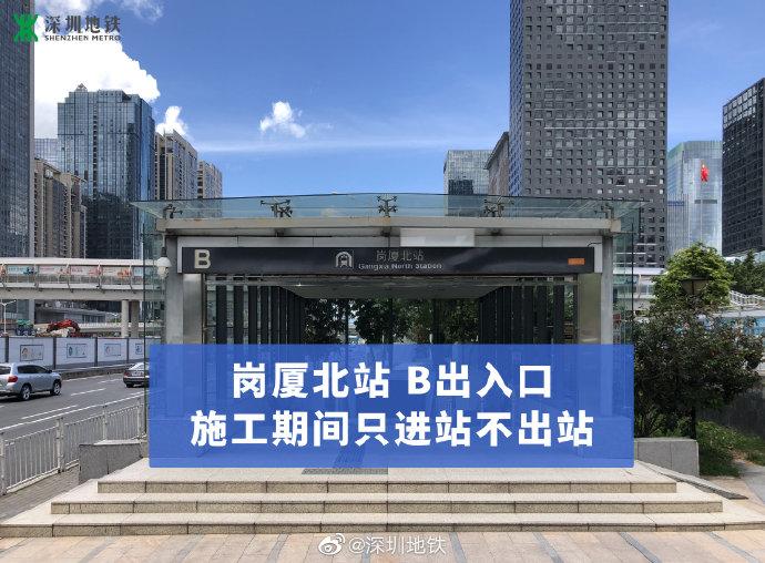 见圳客户端·深圳新闻网2020年7月7日讯 据@深圳地铁消息,为配合岗厦北枢纽建设,深圳地铁2号线岗厦北站将于本周起对站厅区域进行施工改造,施工期间,岗厦北站A出入口正常通行,B出入口只进站不出站。计划施工时间为7月7日至9月30日,具体时间以实际施工进度为准。