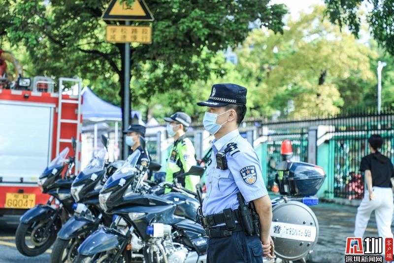 考场外,除了有家长组成的“应援团”外,深圳公安、消防、交警等部门组成的“护考团”也格外醒目。确保高考安全顺利进行,“护考团”精心安排多种措施,答好这道至关重要的“考题”。