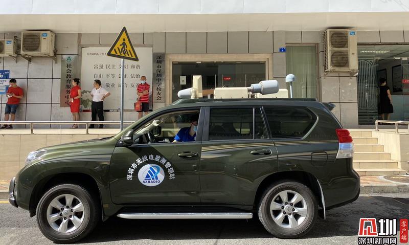 深圳中学考点外无线电监测管理站工作车辆在现场进行保障任务。