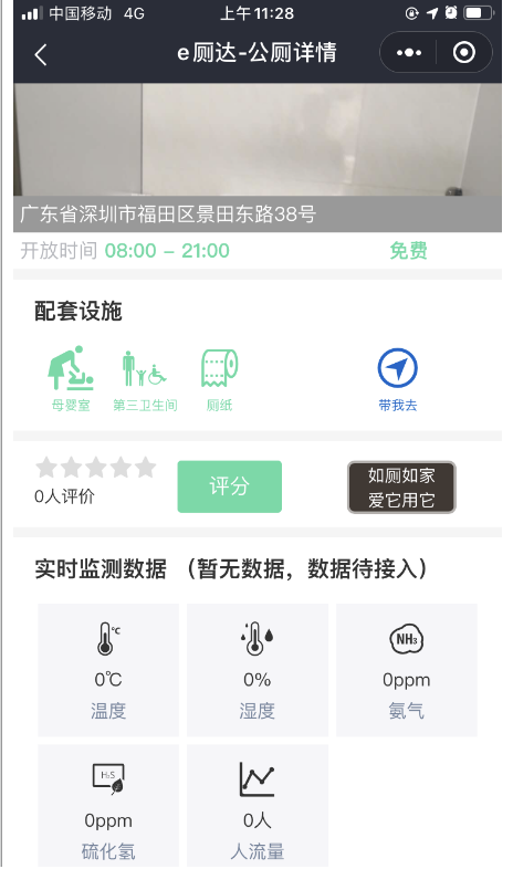 第二个功能是查看厕所情况。如果市民想知道厕所是否爆满,有没有母婴室,卫生情况如何,点击任意厕所可查看每座公厕的详细情况。