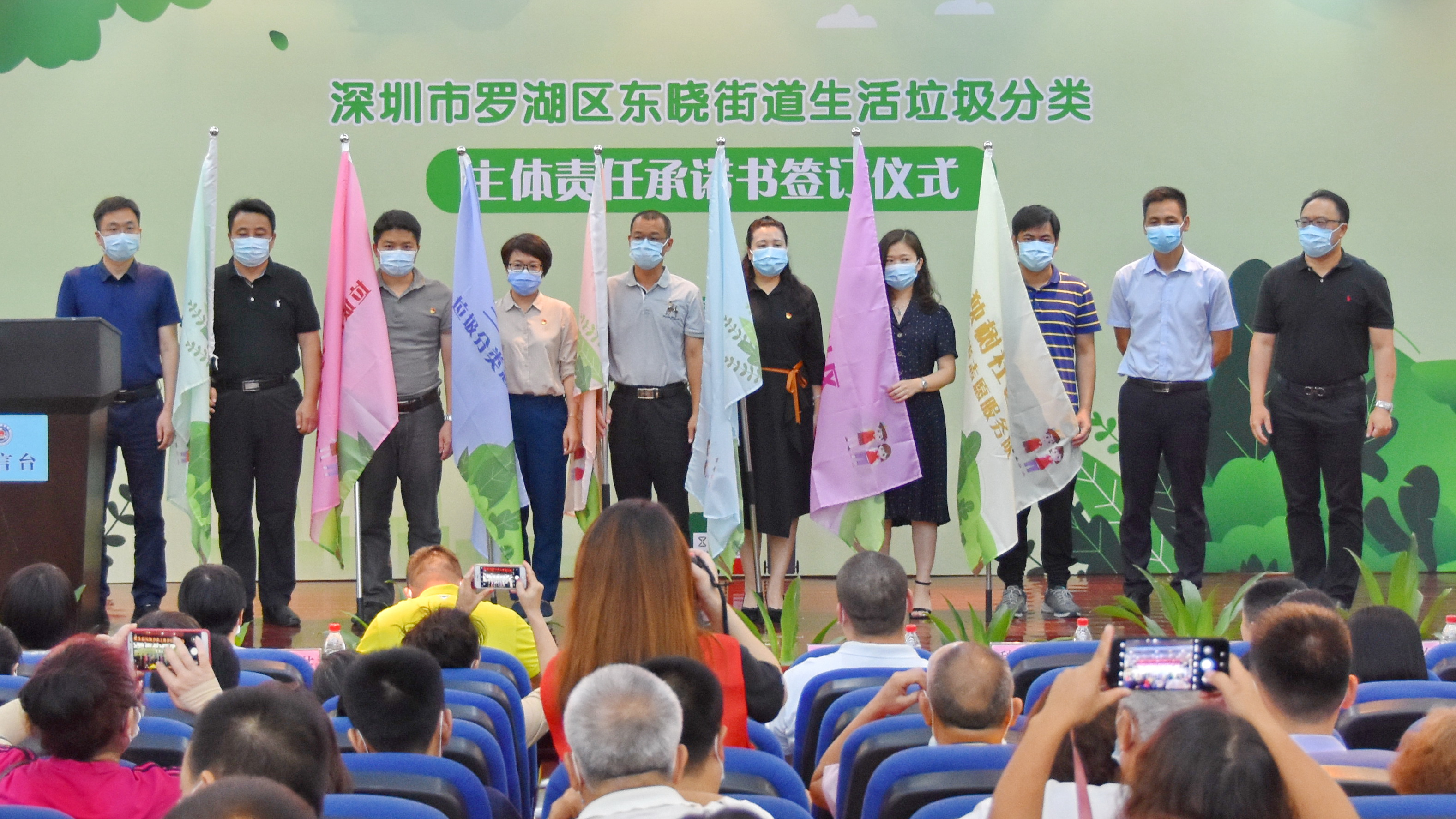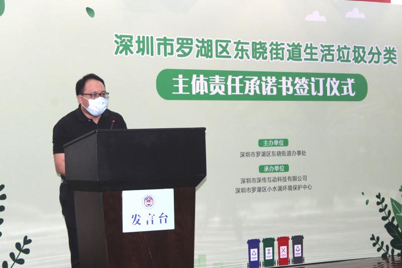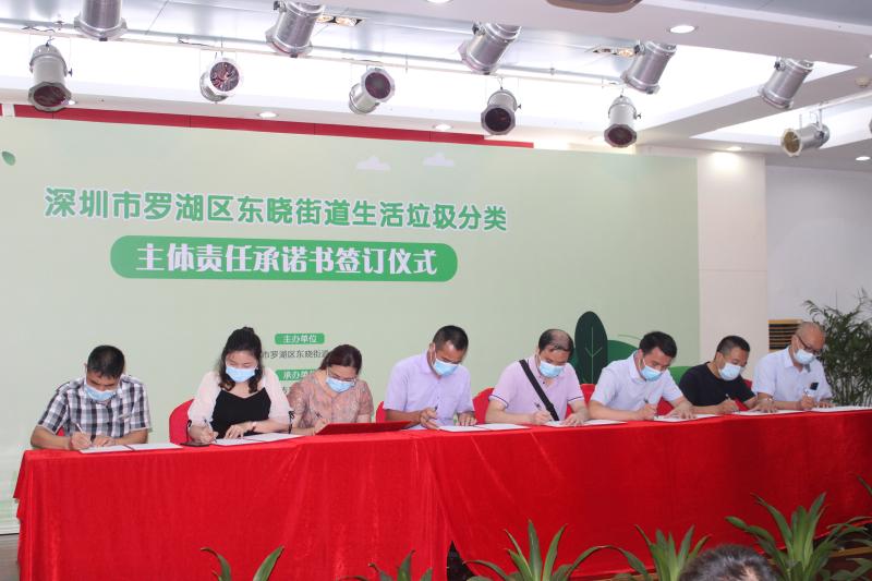 在当天的签订仪式上,东晓街道还与罗湖区义工联、深圳市深分类义工队、小水滴环保中心等义工组织和公益机构合作,成立了全市首支街道级垃圾分类志愿服务队,并将在辖区7个社区组建社区志愿服务支队。