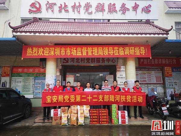 深圳新闻网宝安讯(见圳客户端、深圳新闻网记者 曾舒琪 通讯员 江如和)近日,宝安市场监督管理局第三党支部、宝安区消委会党支部书记刘俊斌一行来到了陆河县河田镇河北村对精准扶贫帮扶结对户进行了慰问活动,为结对贫困户送来了米、油等生活物资,献礼党的生日,把党的关怀和组织的温暖送到村民的心坎上。